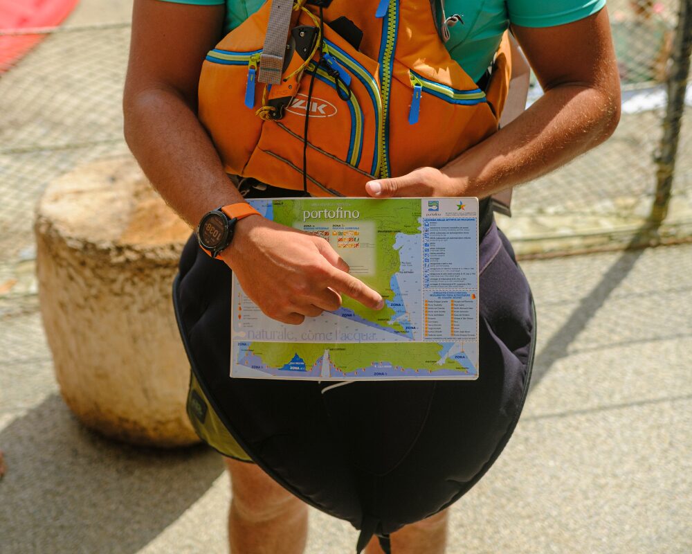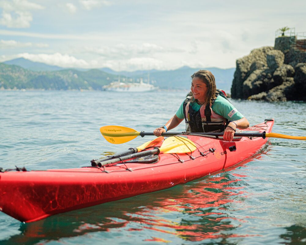 Partendo dalla base di Niasca, una piccola spiaggia affacciata sulla vibrante Baia di Paraggi, ti accogliamo con un briefing semplice e amichevole. Qui riceverete tutta l’attrezzatura necessaria: kayak, pagaia, giubbotto salvagente, e in stagione invernale anche muta, giaccha d’acqua e calzari in neoprene.